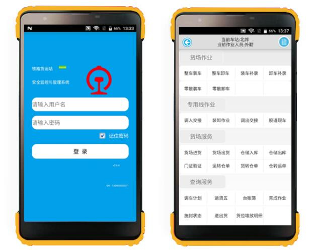 铁路货运手持机是货运课题组根据货运站定制的专用手持移动终端,可与《货运站安全监控与管理系统》进行信息交互。系统集成了RFID模组、二维码模组、语音对讲功能、手持机管理平台等。 货运手持机通过4G网络(安全认证)接收货运站系统下发的作业计划进行作业,对作业过程和问题车进行拍照、录像等影像资料上传到货运站系统,实现移动办公。